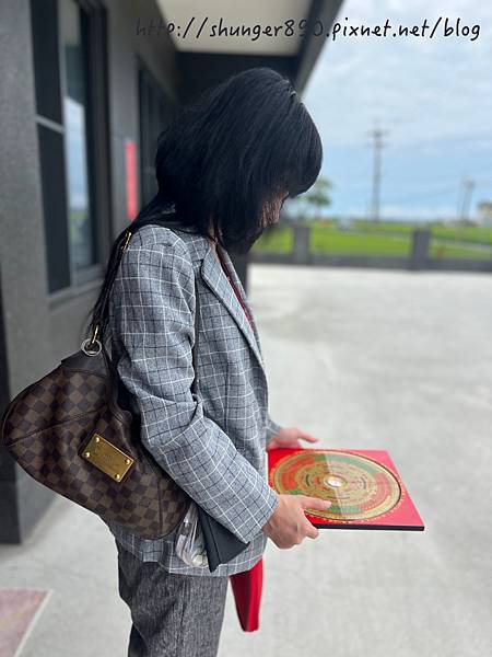老師一到現場,先用羅盤看屋子前後的方位,原來每一間屋子也有依照年份所搭配的流年,不同的時間點落成的大門開的方向也不同。